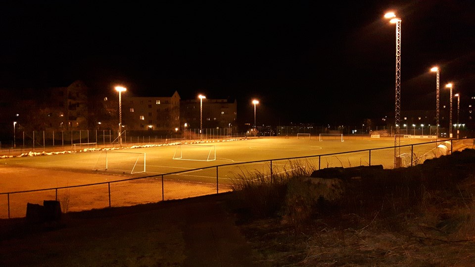 Vi tränar kl 19.00-20.30 istället för vår vanliga tid. Det ger oss mer yta på planen större delen av träningen.
