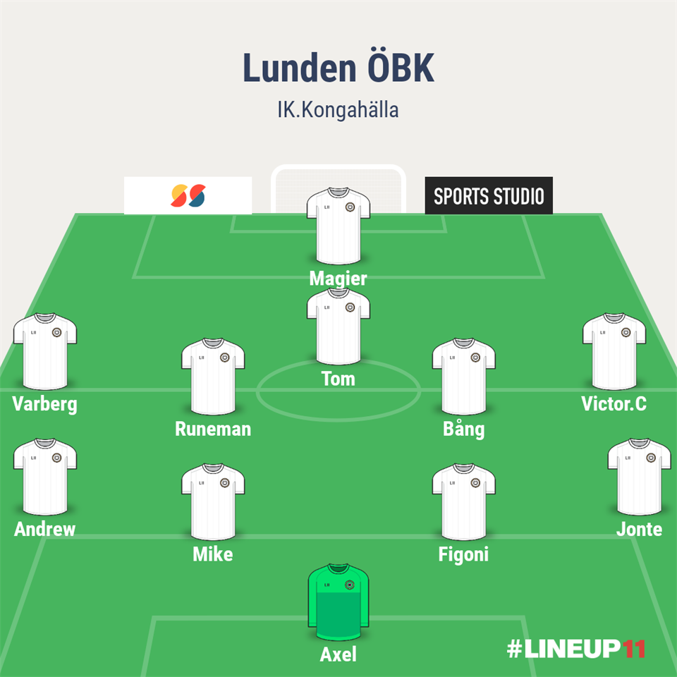Förutsättningarna var klara inför matchen då vi hade resultatet från Björmdammen - Bergum att spela på... en seger med 2 mål mot Kongahälla krävdes för avancemang och det var nära... mycket nära... Först och främst skall vi lyfta på hatten för planskötaren på Kongevi som hade gjort ett kanonjobb med att lösa en kanonbra KG plan. Vi valde att lägga oss i ett läre U läge och lät Kongahälla rulla på egen planhalva fram till halvmånen där vi skulle vara aggresiva och detta föll mycket väl ut. Vi är tighta och IKK hittar inga spelvägar genom oss som ligger helt rätt i våra positioner och lyckas vinna en del boll i bra lägen. När vi är bollförande så försöker vi spela genom lagdelarna vilket glädjer mig, ibland tappar vi boll men man våste våga misslyckas för att utvecklas. Efter cirka kvarten spelad får Kongahälla ett litet mini tryck mot oss då de skapar ett antal hörnor samt frisparkar djupt ner på vår planhalva, men inga heta chanser. Via ett anfall på vänsterkanten slår Tom in bollen i boxen.. som träffar en IKK försvarare och in i mål och ledning med 1-0 Andra halvlek blir lite rock´nroll då vi behöver 1 mål och IKK går för en kvittering. Vi vaskar fram 2 riktigt heta chanser fram till 2-0 men får ej till det, IKK skapar en del chanser oxå och har med knappa 5 minuter kvar en boll mål som doch döms bort för offside. Vi får i sista minuten ytterligare en bra chans men skottet täcks undan och det slutar 1-0 och sorti ur Östra Cupen. En bra kaginsats, vi håller nollan bakåt, många positiva saker i vårt spel som vi tar med oss framöver. IK KONAHÄLLA - LUNDEN ÖBK 0-1 (0-1) 0-1 Tom / Självmål Axel Jonte )55) - Figoni - Mike - Andrew Victor C (42) - Bång - Runeman - Wictor. B Tom Magier - - - - - - - - - - Fredrik (42) Podvorec (55) Vishnu
